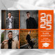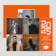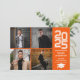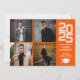 Anuncio de graduación naranja moderno de collage de fotos cuadradas. Este anuncio de graduación moderno presenta un diseño simple de collage de 4 fotos cuadradas. Personalice este diseño personalizado con su propio texto y foto en la parte posterior.