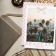 Anuncio de graduación con foto de lazo rosa y blanco Coquette con enrejado rosa en la parte posterior.