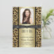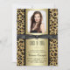 Precioso anuncio de graduación de leopardo con brillo negro y dorado. Puede personalizar fácilmente este elegante anuncio de graduación negro y dorado simplemente agregando su foto y detalles del evento en el estilo de fuente y color, y redacción de su elección. Puede mover las cintas y eliminar si lo prefiere.