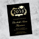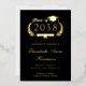 Anuncio moderno de graduación de universidad en negro que incluye tu elección de lámina de oro real, plata o rosa, "Clase de" en una ilustración de una corona de laurel que incorpora un birrete de graduación y diploma y el nombre del graduado en una tipografía elegante. Agrega su universidad, especialidad, honores o planes futuros en tipografía serif clásica.