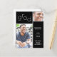 Anuncio de graduación de escuela secundaria o universidad. Dos fotos. Escuela. Año. Nombre. Negro.