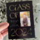 Anuncio de graduación clásico y moderno con lámina para escuela secundaria, universidad, facultad de medicina, facultad de derecho u otra con foto y diseño elegante para la promoción de 2024.