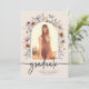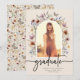 Anuncio de graduación floral. Este anuncio de graduación elegante y con estilo presenta hermosas flores silvestres pintadas a mano con acuarela dispuestas como un hermoso ramo y letra de caligrafía elegante. La parte trasera incluye un hermoso patrón coordinado. Encuentra productos coincidentes en la Colección de Graduación Boho Wildflower.