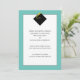Anuncios clásicos de graduación para la promoción de 2025 con elegante gorra negra y borla dorada sobre fondo azul turquesa.