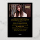 Celebre la graduación de su ser querido con una elegante y moderna invitación de papel metalizado dorado que sirve como anuncio. Esta invitación elegante combina diseños en negro y dorado y le permite personalizarla con dos fotos del graduado y toda la información sobre la fiesta. Es una forma perfecta de hacer saber a todos sus familiares y amigos sobre esta ocasión especial e invitarlos a unirse a la celebración. Así que no espere más; ordene hoy su invitación de graduación y prepárese para la fiesta. Gracias.