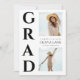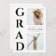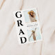 Anuncia tu logro importante con una elegante tarjeta de graduación que combina un diseño moderno con toques personales. En el lado izquierdo, la palabra "Grad" se apila de manera llamativa en negrita y fuente negra, creando una fuerte declaración visual. En el lado derecho, muestra tu viaje con dos imágenes queridas, una en la parte superior y otra en la parte inferior. En el medio, presenta claramente todos los detalles importantes de la graduación, asegurando que familiares y amigos tengan toda la información que necesitan para celebrar tu logro. Esta tarjeta elegante y cuidadosamente diseñada captura la importancia de tu logro y comparte tu alegría con aquellos que te han apoyado.