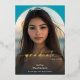 Celebre con estilo tranquilo y elegante con este sencillo y moderno anuncio de graduación, diseñado con un estilo que es todo sobre usted. Con su foto favorita en forma de arco debajo de una superposición suavemente oscurecida y bordeada con un arco flotante de auténtico foil de oro. Un moderno texto "graduado" en auténtico foil de oro se extiende a través de la parte delantera y captura su gracia y sofisticación. Voltee para encontrar todos sus detalles personalizados mostrados en un fondo de aqua turquesa que es sin esfuerzo chic. Es la manera perfecta de compartir sus grandes noticias con estilo. Este diseño se ve mejor con fotos que incluyen colores que complementan el fondo. Creado por Simply Farmhouse Press.