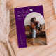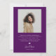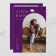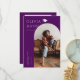 Tarjeta de anuncio de graduación elegante y moderna para enviar a familiares y amigos. Hay un marco de arco púrpura alrededor de tu foto. Tu nombre se puede agregar en la parte superior junto con una ilustración de un gorro de graduación.