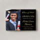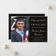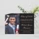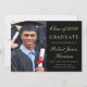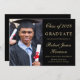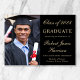 Anuncio de graduación universitaria en negro elegante con una foto del graduado, su nombre y año de graduación en una tipografía dorada con estilo y su universidad, especialidad y honores en tipografía dorada moderna.