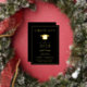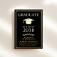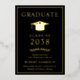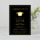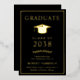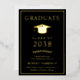 Anuncio de graduación universitaria negra elegante que incluye su elección de lámina de oro real, plata u oro rosa, un clásico birrete de graduado y el nombre del graduado, año de graduación, escuela, título y especialidad u honores en letra moderna.