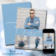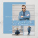 Agrega tus 3 fotos favoritas en la parte frontal de estos anuncios de graduación que presentan la promoción y GRADUADO en letras elegantes sobre un fondo azul suave con tus detalles en la parte posterior. MÁS COLORES y diseños en nuestra tienda.