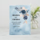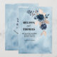 Anuncio/invitación minimalista de guardar la fecha con acuarela azul con arreglo floral azul real. Diseño simple y limpio con imagen de fondo destacada. Carga fácilmente tu propia imagen o foto para hacerlo único. Cambia las fuentes, el color y la redacción. Con la opción de descargar y enviar tu anuncio electrónicamente.