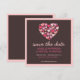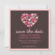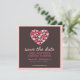 Un corazón de muchos corazones en hermosos tonos de rosa y fucsia sobre un rico fondo marrón chocolate, hace un gran diseño divertido para un anuncio moderno de guardar la fecha.