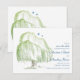 El texto en esta tarjeta de anuncio de guardar la fecha de la boda del árbol de sauce o invitación es totalmente personalizable. Para cambiarlo, use la opción personalizar. Para cambios de texto más extensos, como la fuente, el color de la fuente y la disposición del texto, haga clic en personalizar. El diseño representa un árbol de sauce en colores de primavera y verano de azules y verdes brillantes. Funcionaría bien para una boda de primavera o verano, una boda al aire libre y para una pareja amante de la naturaleza. Aunque actualmente está personalizado como un anuncio de guardar la fecha de la boda, también podría usarse para una despedida de soltera o una fiesta de aniversario. También podría ser agradable para otras ocasiones especiales. Solo use su imaginación... todo lo que tiene que hacer es cambiar el texto.