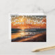 Hermosa puesta de sol en la playa de fondo. Luces colgadas sobre el océano. Personaliza con toda la información de tu próxima boda.