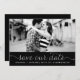 Anuncio de guardar nuestra fecha fotográfico caprichoso y femenino con escritura delicada blanca sobre fondo negro. Están disponibles otros colores y artículos similares.