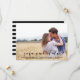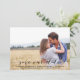 Anuncio elegante de guardar la fecha con foto con secuencias de escritura en caligrafía rústica y rayas en la parte posterior.