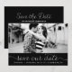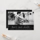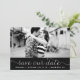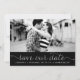 Anuncio de guardar nuestra fecha con foto caprichosa y femenino que presenta letra blanca delicada sobre fondo negro. Otros colores y artículos similares están disponibles.