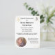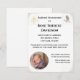 El diseño presenta la imagen de una cruz dorada con las letras IHS en la parte superior izquierda. (El símbolo católico para Cristo) La esquina superior derecha muestra la imagen de una paloma y un rocío de agua. La parte inferior izquierda presenta la foto que usted proporciona en forma circular. Los fondos del anverso y reverso son blancos. Las esquinas del anverso tienen un aspecto aerografiado. Muy elegante. Perfecto para anunciar el Bautismo de su pequeño. Todo el texto es personalizable. También disponible en crema.