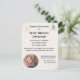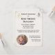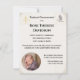 El diseño presenta la imagen de una cruz dorada con las letras IHS en la parte superior izquierda (símbolo católico de Cristo). La esquina superior derecha muestra la imagen de una paloma y un rocío de agua. En la parte inferior izquierda se presenta la foto que usted proporciona en forma circular. Los fondos del anverso y reverso son de color crema. Las esquinas del anverso tienen un aspecto aerografiado. Muy elegante. Perfecto para anunciar el Bautismo de su pequeño. Todo el texto es personalizable. También disponible en blanco.