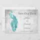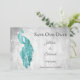 Personalice una invitación boda única con un pavo real Verde azulado Guardar la fecha. El diseño de la invitación presenta un pavo real elegante con un delicado follaje y fondo de color y texto que puede personalizar con los detalles de su fecha boda. Además, guarde el anuncio de fecha disponible para este diseño en una variedad de colores.