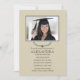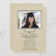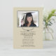 Un maravilloso anuncio de graduación sobre un fondo de color arena con una lámpara negra del conocimiento justo debajo de la ventana de la foto de doble marco. La lámpara está recortada a ambos lados por ramas de laurel. La tira de laurel flotante debajo se puede arrastrar a cualquier ubicación, hacerse más grande o más pequeña. Adecuado para cualquier género o grado. La tarjeta es fácil de personalizar con su redacción, fuente, color de fuente y elección de seis tipos de papel.