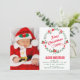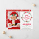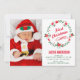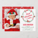 Navidades foto tarjeta de anuncio de nacimiento con una hermosa corona floral roja y verde. Añada todos sus preciosos detalles sobre esta plantilla fácil de usar y adorne esta tarjeta con la foto de su bebé para convertirla en una invitación única. Voltea la tarjeta para mostrar un elegante patrón de copos de nieve rojos y blancos en la parte posterior de la tarjeta.