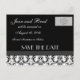 Tarjetas de Damasco para Guardar la Fecha con Monograma y nombres de novia y novio. Arte y diseño por Elke Clarke ©2010. Personalice con la información de su compromiso, inicial y esquema de color.