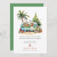 Este anuncio festivo de mudanza presenta el dicho "Saludos Navideños desde Nuestro Nuevo Hogar Dulce Hogar" con una hermosa autocaravana retro con palmeras y decoraciones navideñas. El anuncio es perfecto para enviar a amigos y familiares durante la temporada navideña para informarles sobre su nueva dirección. La parte frontal del anuncio presenta el dicho y la escena de la autocaravana retro, e incluye su nueva dirección e información de contacto. El diseño general es festivo y único, y el anuncio seguramente pondrá una sonrisa en los rostros de sus seres queridos.