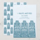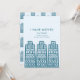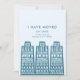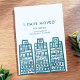 Ciudad de estilo retro con edificios de ciudad de dibujos animados en azul para un anuncio de nueva dirección muy exclusivo.