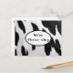 Una forma divertida de anunciar tu mudanza con esta imagen realista de cuero de vaca con manchas negras y blancas y el texto: Estamos Moooo-viéndonos en una fuente divertida.
