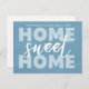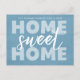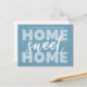 Esta tarjeta postal presenta un fondo con textura azul y letras en negrita en la parte frontal que dicen "Hogar Dulce Hogar" en tonos de blanco. Utilice la plantilla para agregar su texto personalizado en la parte delantera y trasera de la tarjeta. Utilice el botón Personalizar para agregar texto adicional.
