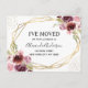 Moderno y Elegante Floral Lámina de Oro Faux Geométrico Acuarela Primavera Borgoña y Rosa Floral Flores Me He Mudado Tarjetas de Nueva Casa o Nueva Dirección - incluye una hermosa y elegante tipografía de letra cursiva con flores modernas y vegetación para la especial celebración de Nueva Casa o Nueva Dirección.