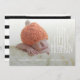 Anuncio de natalidad con temática de Halloween con las palabras "nuestra pequeña calabaza" en un texto blanco moderno con la foto de su bebé mostrada detrás. La superposición blanca y el texto se pueden colocar en cualquier parte de la tarjeta. La parte posterior de la tarjeta presenta un patrón rayado de color blanco y negro.