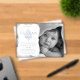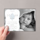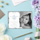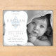 Añade simplemente el color de tu preciosa pequeña foto en blanco y negro, así como los nombres de familia y los detalles de su nacimiento y personaliza este dulce diseño de cruz cristiana vintage azul y blanco para anunciar a tu recién nacido. Diseño original de Holiday Hearts Designs (todos los derechos reservados).