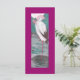Anuncio de nacimiento vintage de 1906. Una cigüeña parada en un estanque de lirios sostiene a un bebé en su pico.