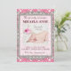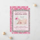 Anuncio de Nacimiento con Damasco Rosa y Marrón. Super adorable y totalmente personalizable con tu foto y tu propio texto.
