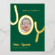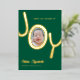 Tarjeta de anuncio de nacimiento de vacaciones con lámina de oro real Bundle of JOY con la palabra JOY con la foto de tu bebé recién nacido dentro de la O. Fondo verde con letras de lámina de oro real hace que este anuncio de nacimiento de vacaciones elegante y moderno sea del agrado de tus amigos y familiares, con los datos del nacimiento y 2 fotos de tu nuevo bebé.