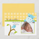 Nuestro anuncio de nacimiento con foto de bebé lindo y de moda presenta una pequeña hipopótamo adorable que mira hacia afuera una foto del bebé. Pájaro bebé lindo en una rama con un adorno de lunares amarillos en la parte superior. ¡Personalice nuestro anuncio de nacimiento con SU foto e información del bebé y estará listo para comenzar! También hay productos que combinan disponibles. ©Cocoa Studio