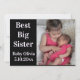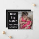 Tarjeta de anuncio de nacimiento con foto que incluye el texto "Mejor hermana mayor". ¡Ideal para un hermano o hermana mayor que da la bienvenida a un nuevo hermano o hermana en la familia! Mensaje especial que puedes personalizar en el reverso. Diseño moderno y elegante en negro y blanco.