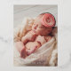 Anuncia la llegada de tu bebé con esta elegante tarjeta de anuncio de nacimiento con foil de rosa dorada en formato vertical de retrato. Una foto de recién nacido a sangre llena la parte frontal con el nombre del bebé en moderna tipografía minúscula a mano con foil de rosa dorada y los detalles de nacimiento debajo. La parte trasera presenta un diseño blanco limpio con un collage de tres fotos y un mensaje de "Bienvenida con amor" de los orgullosos padres. Todo el texto con foil y texto plano es totalmente personalizable.