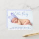 Anuncia la llegada de tu paquete especial de alegría con este gran "Hola Bebé" en escritura azul y tipografía púrpura con fondo azul suave. Agrega la foto del bebé, nombre, estadísticas en la parte delantera e incluye un mensaje en la parte trasera o déjalo en blanco y escribe a mano un mensaje personal más tarde. No es específico para un género. Colores hermosos para niño o niña. Los colores de la fuente se pueden cambiar - vaya a personalizar más. Por favor, envíeme un correo electrónico si necesita ayuda para hacer esto más suyo o para ayudar a adaptar su foto. designsbykatz@gmail.com