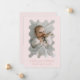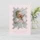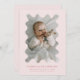 Tarjeta de anuncio de nacimiento caprichosa y dulce con marco de foto dibujado a mano de línea ondulada. Fondo rosa.