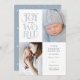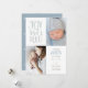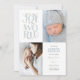 Esta tarjeta de anuncio de nacimiento de Navidad presenta la frase Alegría a nuestro mundo en letra a mano acentuada con estrellas junto a dos fotos de tu nuevo bebé y mucho espacio para agregar el nombre de tu recién nacido, cumpleaños y detalles de nacimiento.