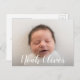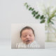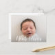 Este dulce y simple diseño de tarjeta postal de anuncio de nacimiento cuenta con una foto horizontal a sangre y el nombre en letra cursiva en la parte frontal. En el reverso encontrarás texto y detalles que podrás personalizar. Hay espacio para otra pequeña foto en la parte trasera, que también puedes eliminar si lo deseas. Luego solo tendrás que rellenar la dirección del destinatario (etiquetas manuscritas o impresas), añadir un sello, ¡y listo!