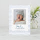 El Anuncio Clásico de Nacimiento con Rayas Azules es un momento muy apreciado en un estilo clásico. Captura la esencia pura del alegre viaje hacia la paternidad con este anuncio de nacimiento. Esta invitación, elaborada con un toque nostálgico y un toque de encanto moderno, es la forma perfecta de presentar al mundo tu pequeño paquete de alegría. Enclavado en una frontera de rayas azules dibujada a mano orgánicamente, su preciosa foto del recién nacido ocupa el centro del escenario, rodeado por la calidez de la tradición y la promesa de nuevos comienzos. Los tonos suaves y suaves de las franjas azules exudan una sensación de calma y crecimiento, simbolizando el capítulo fresco de la historia de tu familia. Todos los detalles están diseñados a la perfección, desde los trazos artísticos e imperfectos de las rayas que irradian un ambiente auténtico, hasta el papel de alta calidad que aporta un toque de elegancia. El diseño clásico es un guiño a la naturaleza atemporal del amor y la familia, asegurando que esta invitación sea valorada no sólo por ti sino también por aquellos afortunados que la reciban. Ya sea que compartan la noticia con familiares y amigos cercanos o que hagan una invitación a un círculo más amplio, este anuncio de nacimiento combina sin esfuerzo la tradición y la estética contemporánea. No es sólo un pedazo de papel; es un pedazo de tu corazón, un símbolo del amor que ha florecido con la llegada de tu pequeño. Celebra el milagro de la vida, anuncia la llegada de tu bebé y difunde la felicidad con este clásico anuncio de nacimiento. Un aguijón que captura la esencia de un momento, enmarcado para siempre dentro de franjas azules dibujadas a mano -una frontera que significa el amor sin límites y la alegría que tu nuevo viaje tiene. Incluya una foto adicional y detalles de la llegada de su nuevo en la parte posterior de la tarjeta.