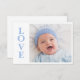 Tarjeta de foto dulce con tipografía L-O-V-E. Agrega tu propia foto y estadísticas de nacimiento en la parte posterior. ¡Tan lindo!