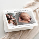 Un dulce anuncio de nacimiento de un collage de fotos de 3 fotos y una carta de agradecimiento con un simple tipo moderno y 3 fotos en la parte delantera. El interior tiene un gran encabezado de nombre completo y un mensaje personal de la familia. Haga clic en el botón de edición para personalizar este diseño con sus fotos y detalles.