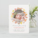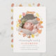 Este lindo anuncio de nacimiento de fotos presenta un fondo blanco crema con una corona de animales de bosque que son zorros, conejitos y ardillas, hojas de otoño/otoño, setas y bellota. El reverso presenta un fondo beige claro con motivos otoñales. Personalízalo para tus necesidades. Puedes encontrar productos coincidentes en mi tienda.