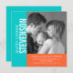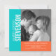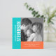 Modelo de tarjeta plana de anuncio de nacimiento Aqua Blue y Naranja Modern Baby Boy con foto. Personalizable completo. Utilice las instrucciones para reemplazar la foto de muestra con su propia fotografía de bebé y detalles del anuncio de nacimiento y el nombre de su bebé. Seleccione "personalizar" para cambiar los colores del texto y el fondo de la parte delantera y trasera de la tarjeta. Diseño de Elke Clarke ©. Este diseño audaz y sencillo es perfecto para los padres que desean una mirada moderna y limpia a sus anuncios de nacimiento.